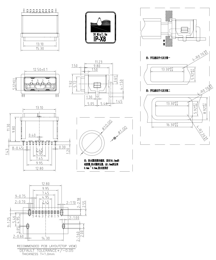 IP68 Waterproof USB A Female Connector Top Mount 9Pin USB 3.0 A Female Connector Product Item:U03-AFXXXT-W004 Housing:PA9T &LCP Contact:C5210R-EH Current Rating:3A Dielectric Withstanding Voltage:100 V R.M.S. Top Mount IP68 Waterproof USB A Female Connector 9Pin USB 30 A Female Connector Inquiry Send Email Datasheet